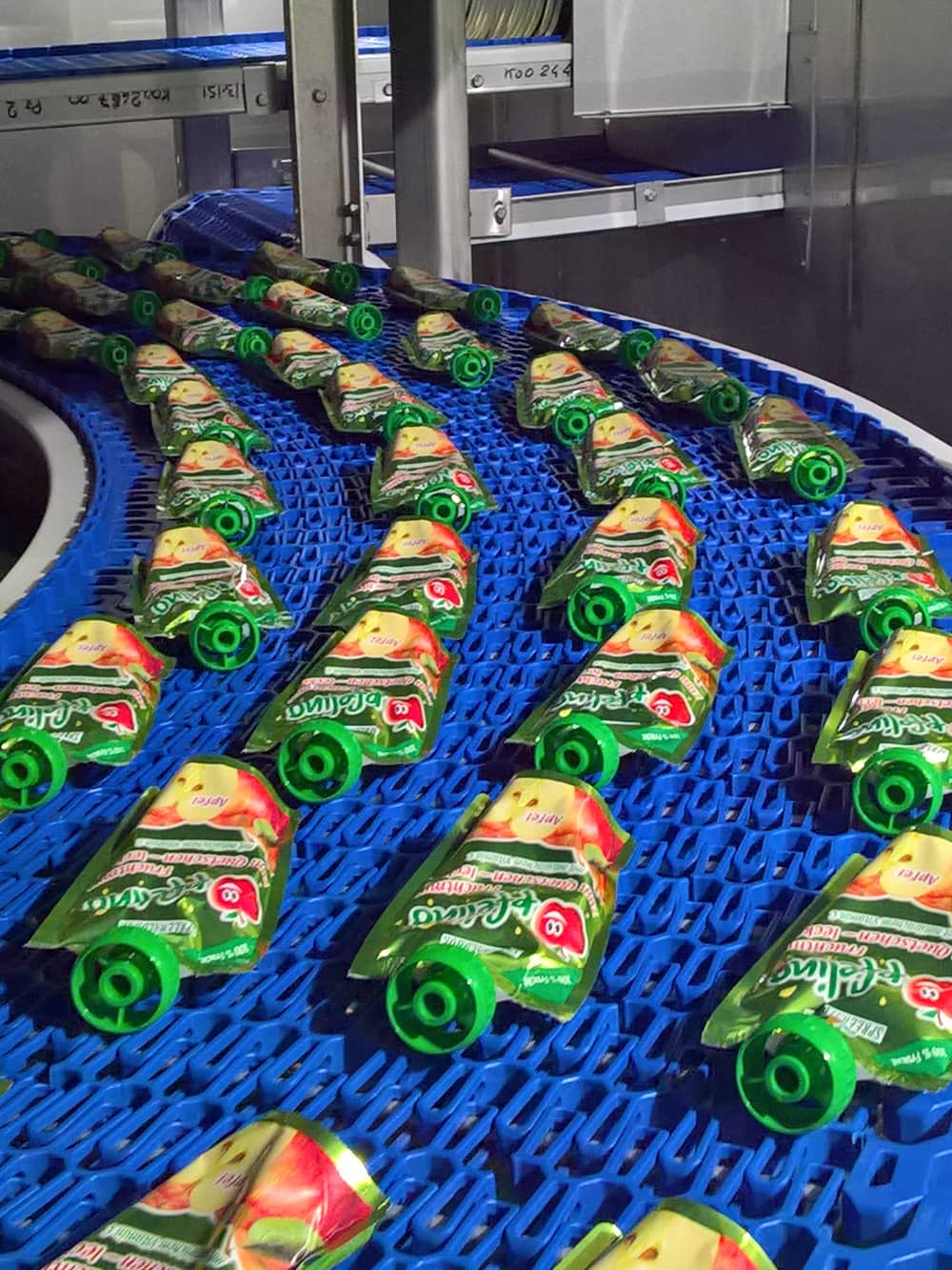 Sarp designs customized conveyor belts and thermal treatment systems for fruit and vegetable products based. Our machines are ideal for plastic or paper packages, like bags with cap and spout (doypack, spout pouches, cheer pack, stand up pouches), and also for other types. We realize, for example, fruits and tomatoes purees processing systems. The ideal treatment for these production lines consists of a pasteurizing process or the hot holding process, in order to hold the product at high temperature, that allows to break down the bacterial. The next step is to cool down the package, which allows a fast-thermal shock, necessary for the preservation of the product, and to ensure easy handling or storage of secondary packages. These systems can work by water or by air, according to the functionality of the production line and your needs.